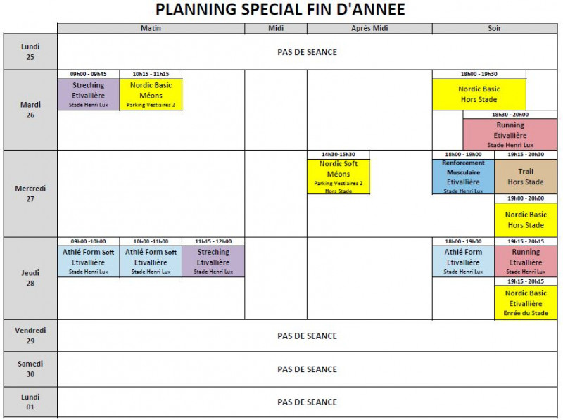 Retrouvez le planning aménagé pour cette dernière semaine 2023